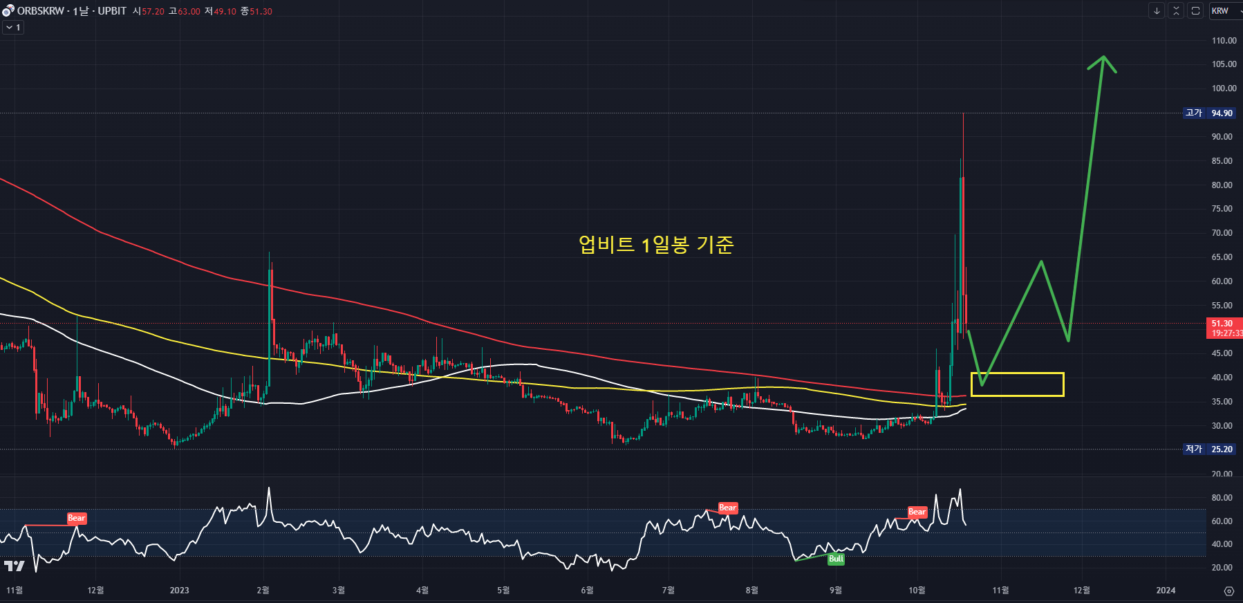 개인적인 관점으로는 365이평구간인 35-40원대에서는 한번 매수를 받아볼만한 코인이지 않을까 생각합니다.