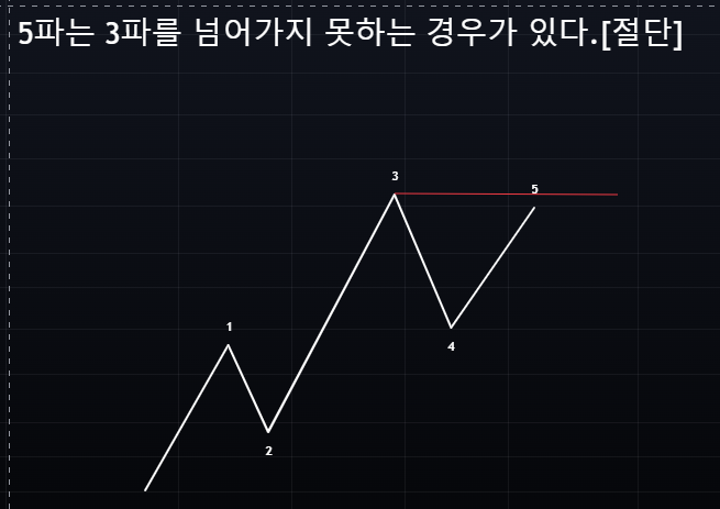 ① 3파동이 너무나도 확장이 길게 되서 5파동에서는 매수의 힘을 못받치는 경우.