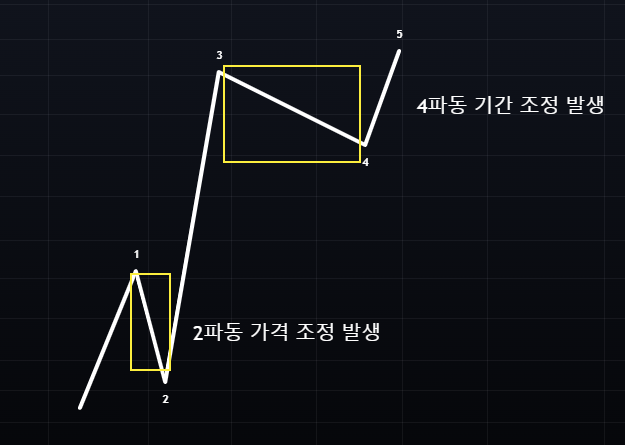 그럼 2,4파가 모두 가격조정 / 기간조정이 나올 수는 없다는 얘기가 되죠.