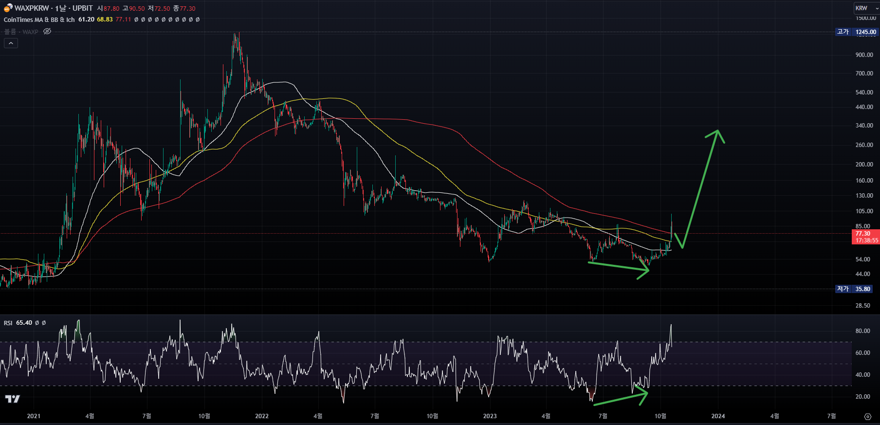 [업비트 왁스 1일봉 차트]