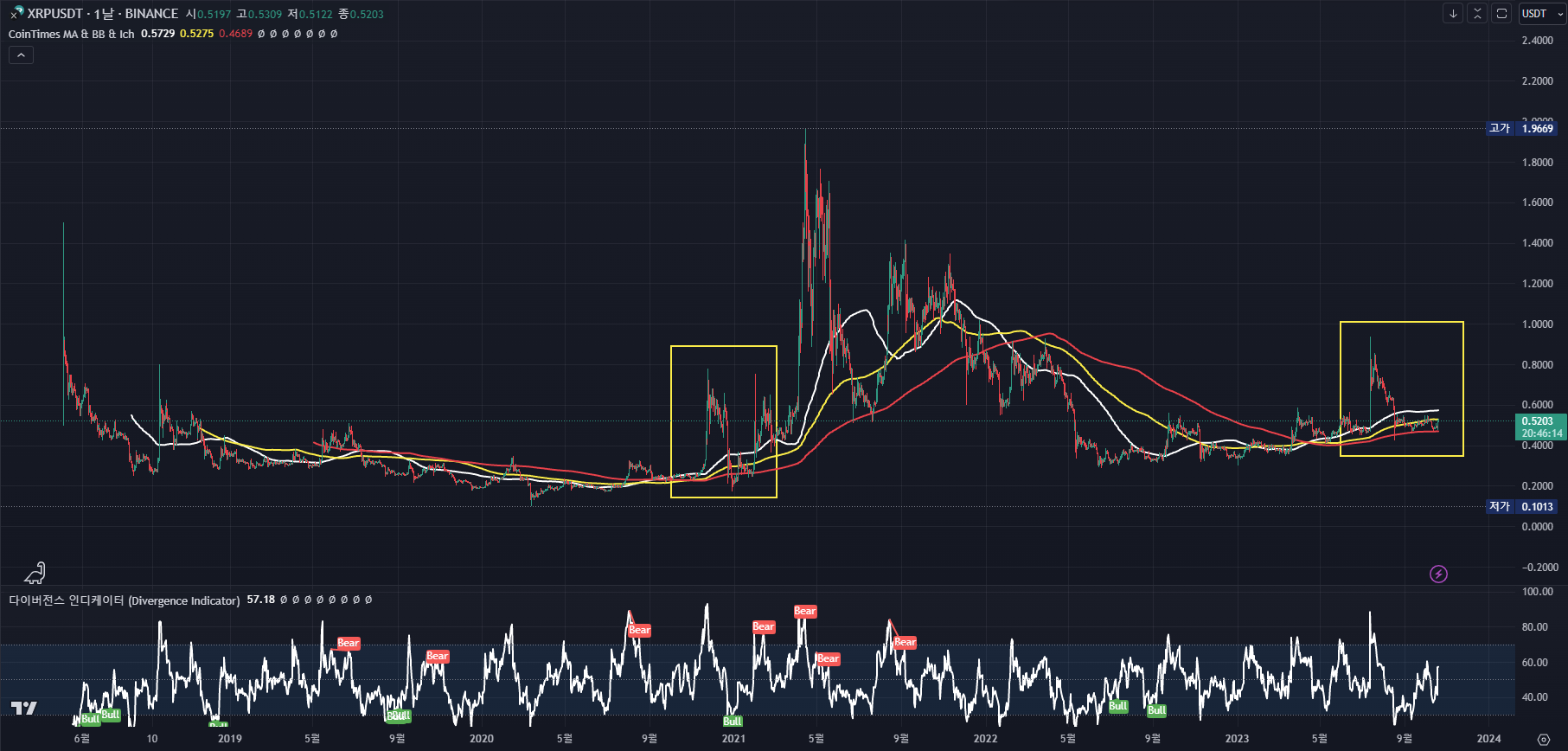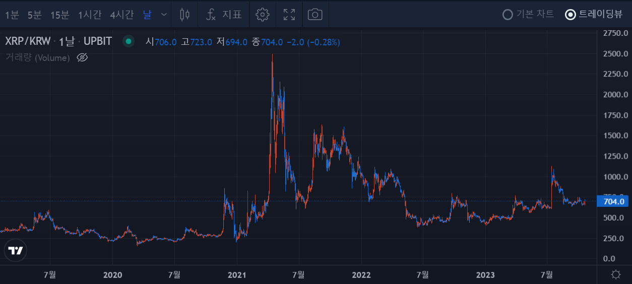 오늘 미 SEC 리플 경영진 상대 소송 취하 이슈로 갑자기 6%가 올라버린 리플 코인.
