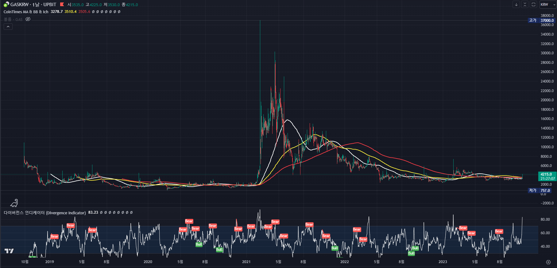 [가스 업비트 1일봉 기준]