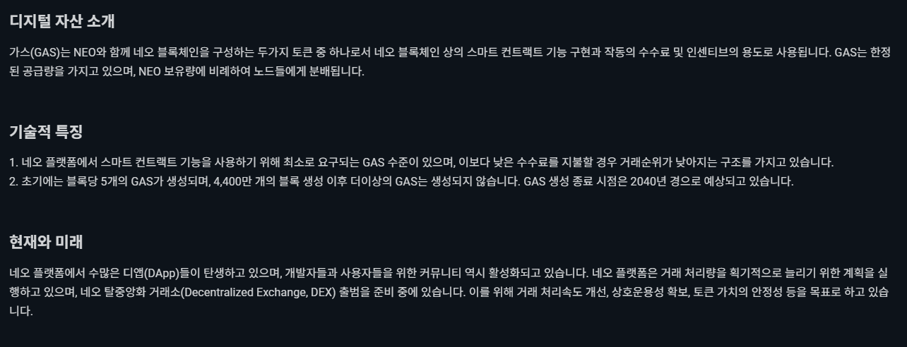가스는 중국 대장주로 잘 알려진 네오(NEO)를 구성하고 있는 코인입니다.