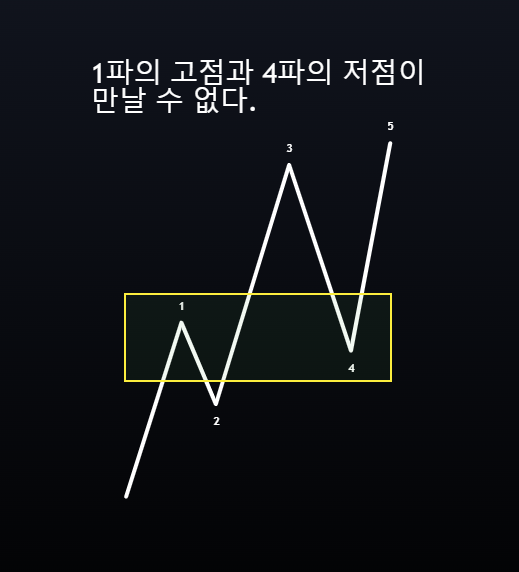 3) 4파의 저점은 1파의 고점과 겹치지 않는다.