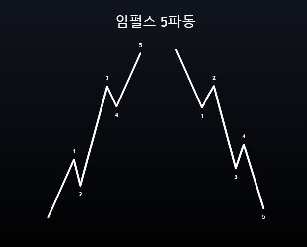 임펄스는 상승에만 나오지 않습니다. 당연히 하락에도 임펄스 5파동이 나올 수 있으며,