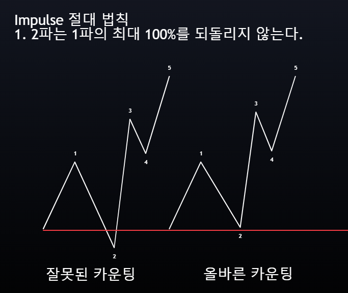 1. 2파는 1파의 100% 이상을 되돌리지 않는다.